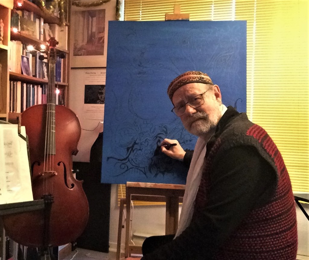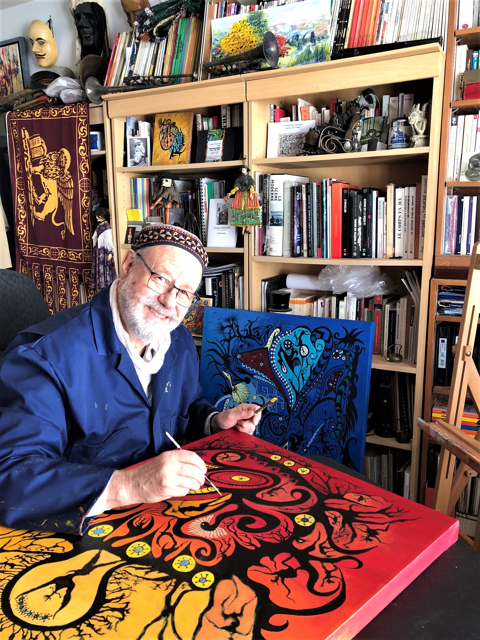 Le passage de la « 3D marionnettique » à la « 2D de la toile » s’est imposé à moi comme un prolongement logique de mes recherches plastiques dans l’élaboration de spectacles de marionnettes comme sculpteur et peintre des marionnettes et des décors utilisées dans mes spectacles. Mon expérience d’artiste de théâtre s’est constamment trouvée immergée dans des univers plastiques complexes, contribuant par leur richesse visuelle à façonner une sensibilité poétique originale à mes spectacles et à ceux auxquels j’ai participé. C’est un double mouvement de création qui s’effectue ainsi entre ma pratique théâtrale et le passage par les deux dimensions du dessin et de la toile.