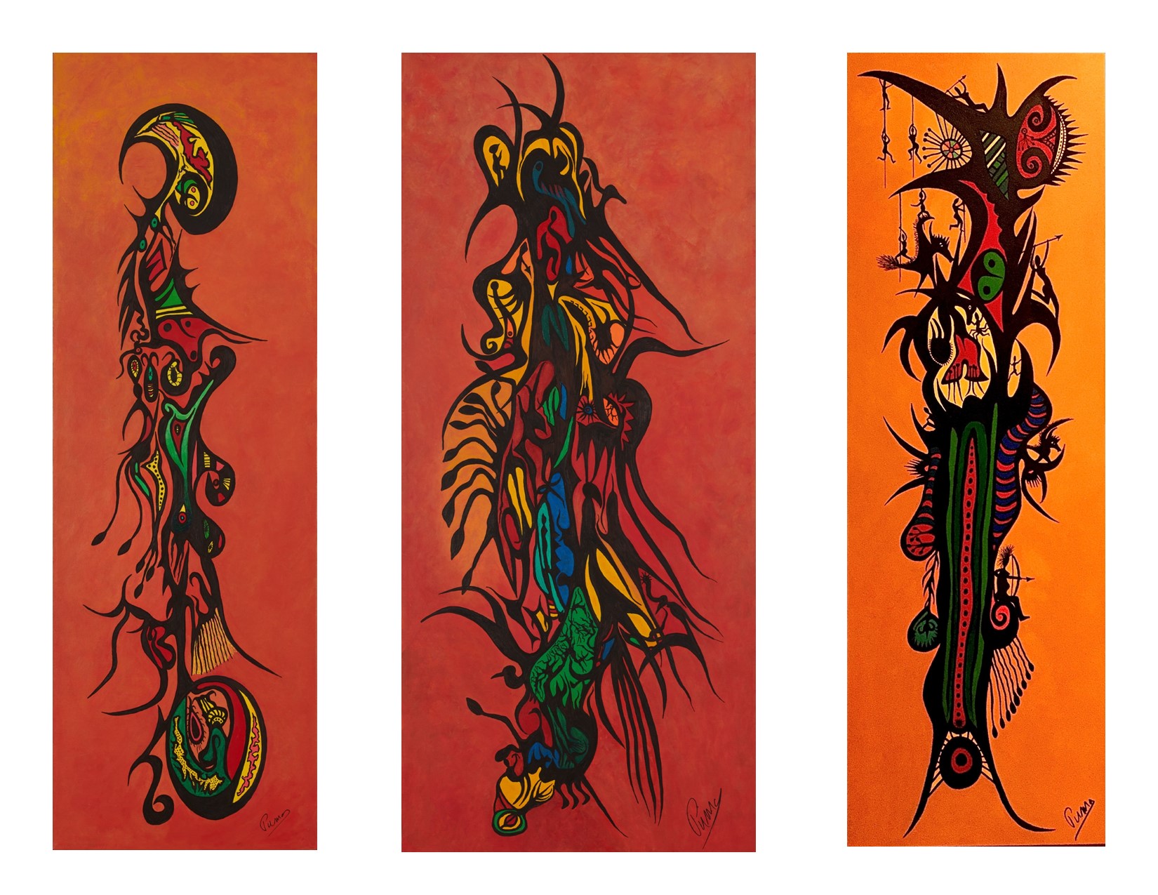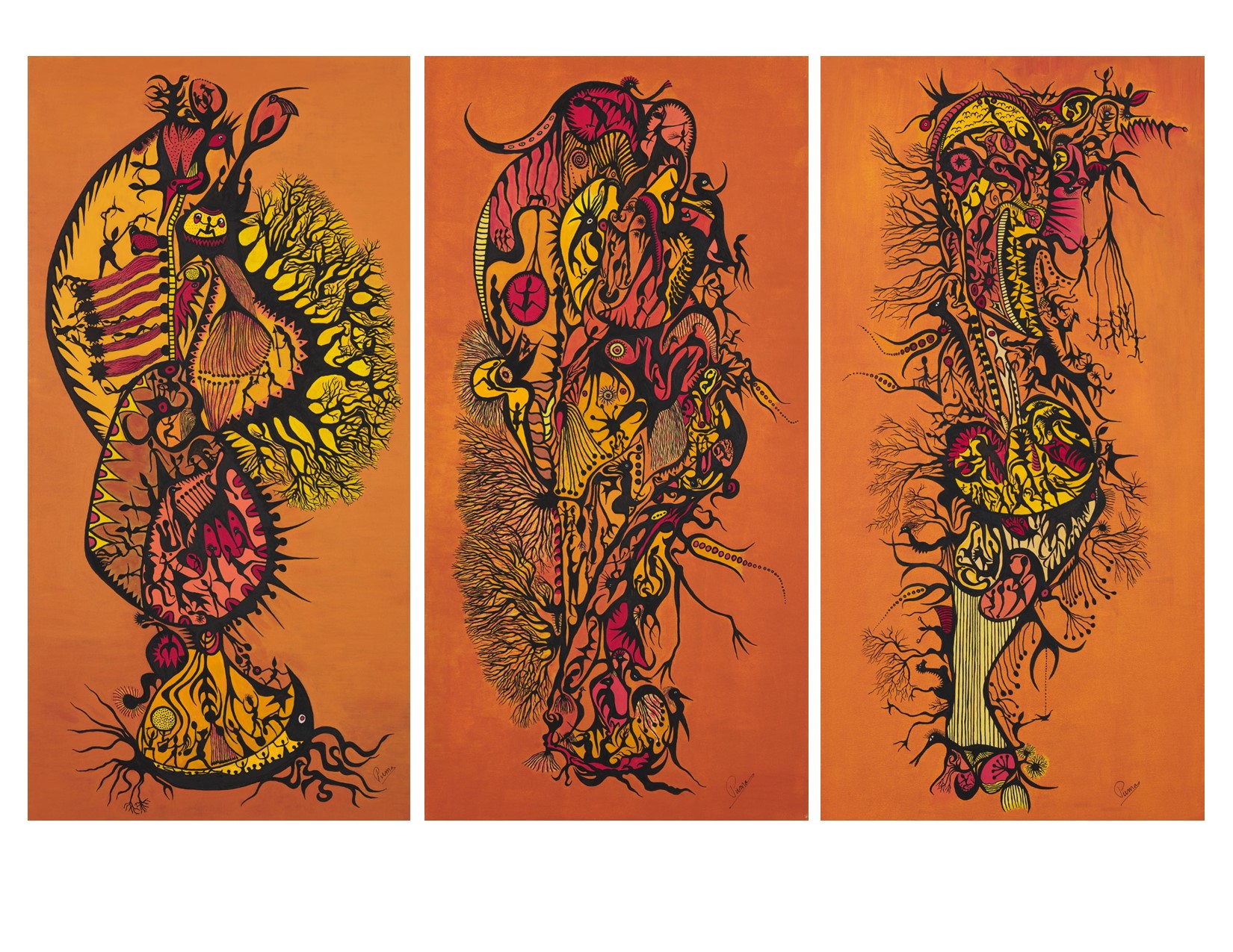 Triptyque 1 Germination ; Triptyque 2 Éclosion ; Triptyque 3 Suspension