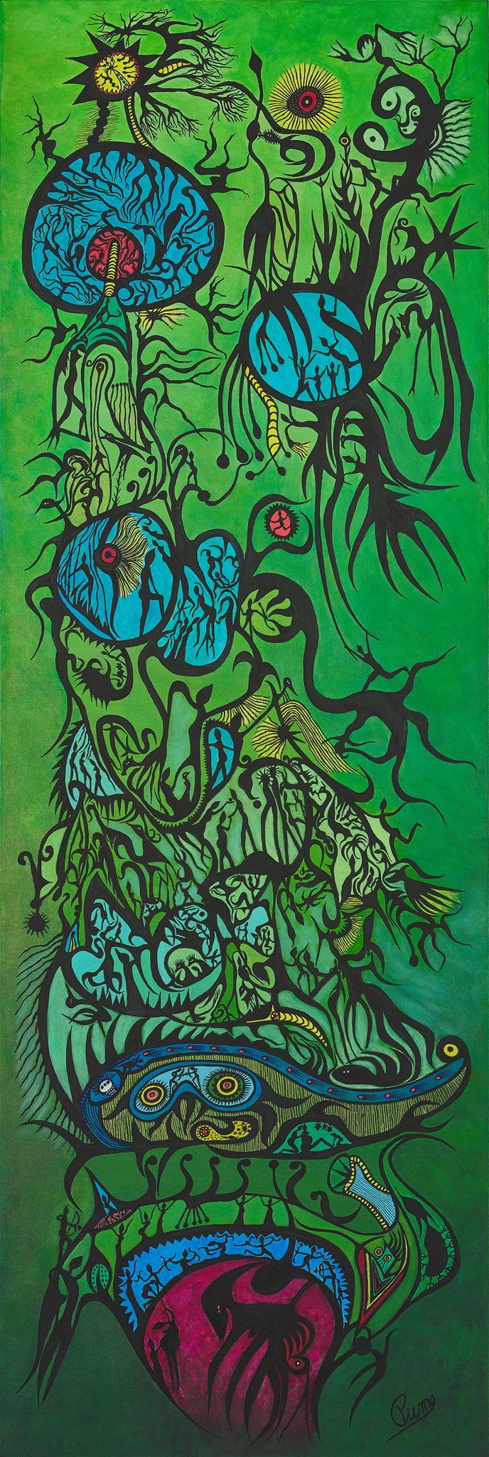 Germe de confinement, 2020, Acrylique sur panneau de bois, (40 X 15 po) 121,92 X 91,44 cm (H x L)