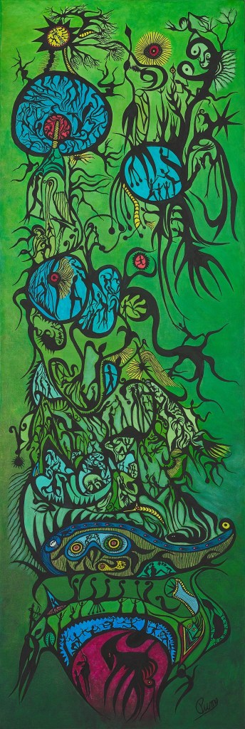 La Grande incantation, 2019, Acrylique sur toile, (40 X 15 po) 101,6 X 38,1 cm (H x L)