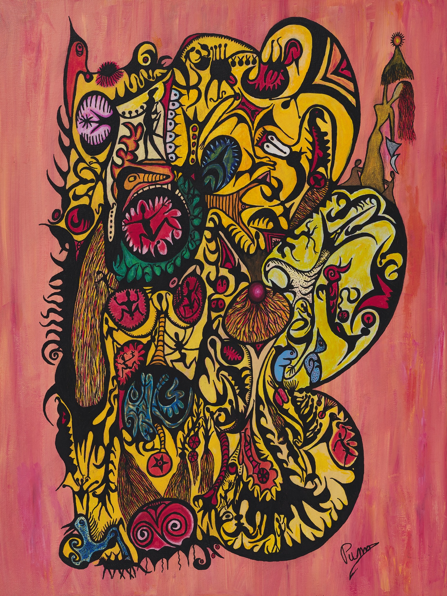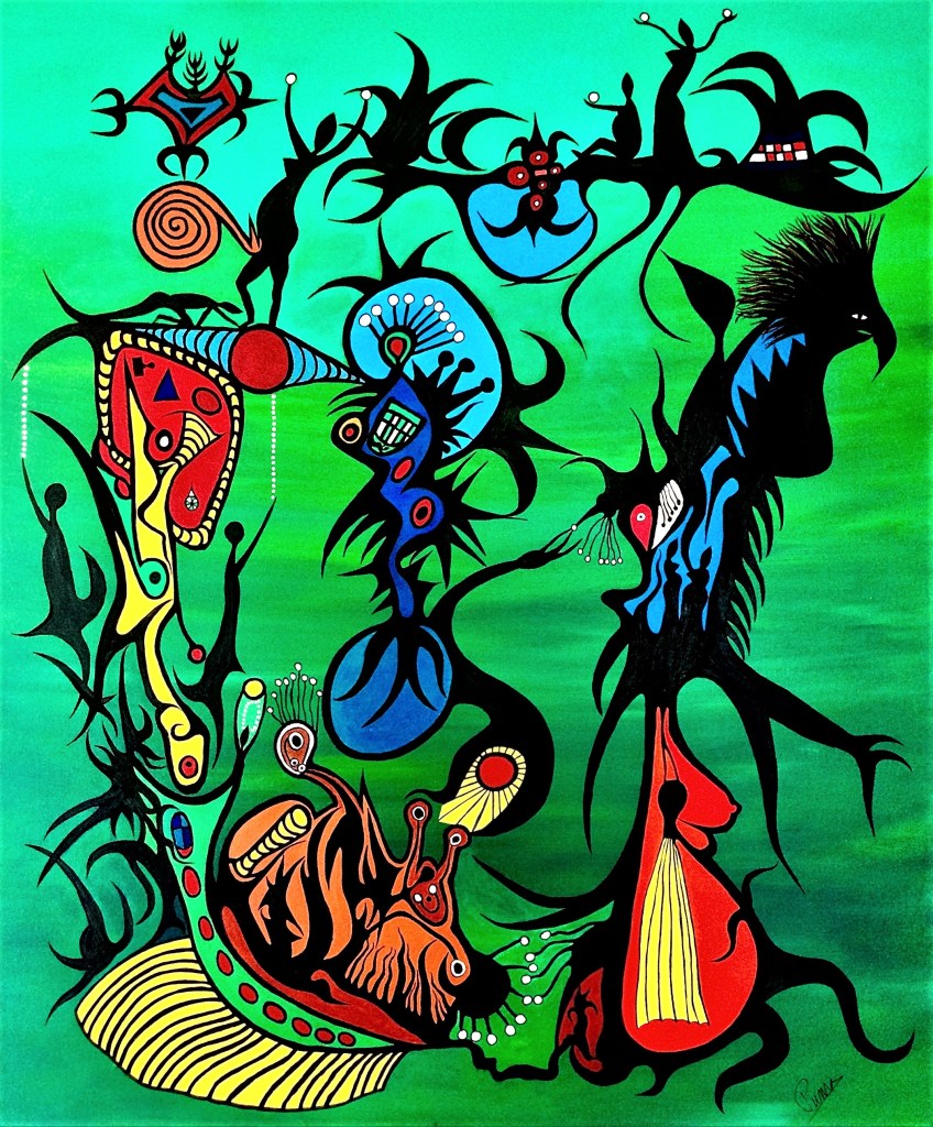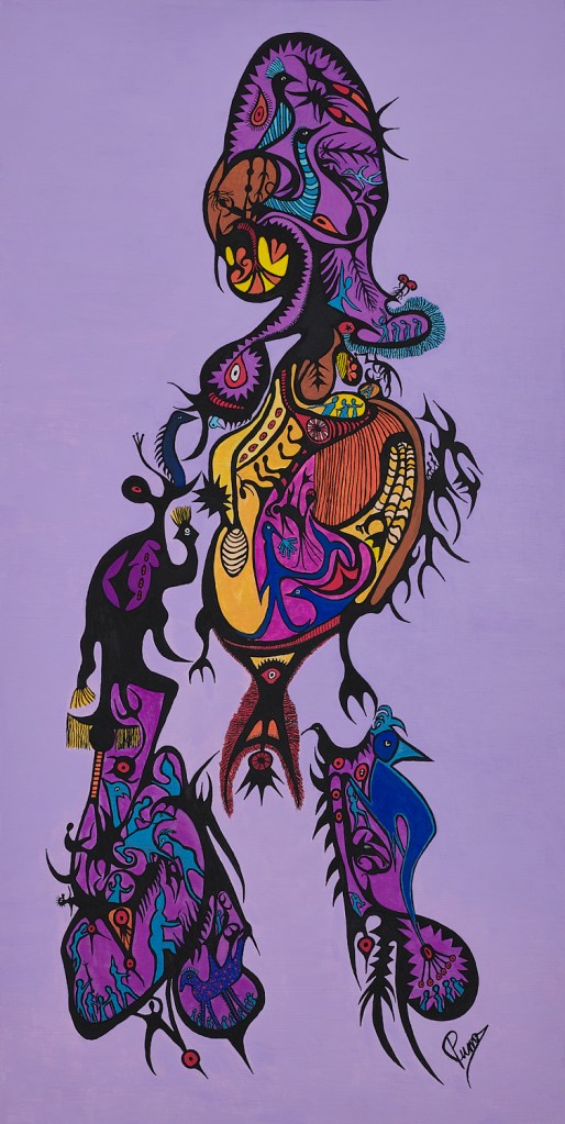 Entends-tu le cri du Cacatoès ? 2021, Acrylique sur toile, 36 X 30 po, 76 cm X 91 cm (H x L)